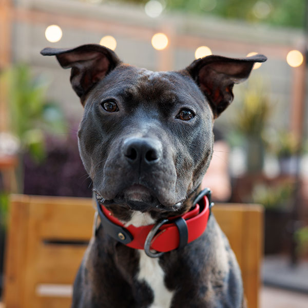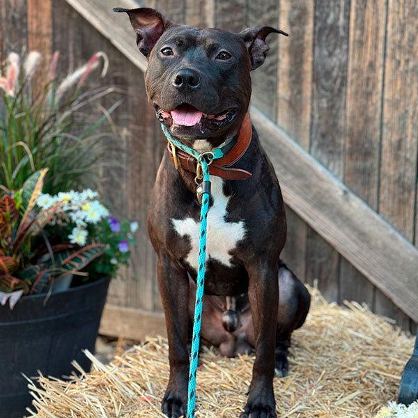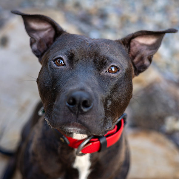 I’m an extremely handsome black pit bull who resembles a fruit bat (in a good way). I’ve got a lean, strong, sporty build—my foster mom says I have “nice conformation,” which I assume means I should be in magazines. My coat is short, jet black, super shiny, with little flashes of white—just like the Adidas Samba. Coincidence? I think not. - What do you like to eat?
