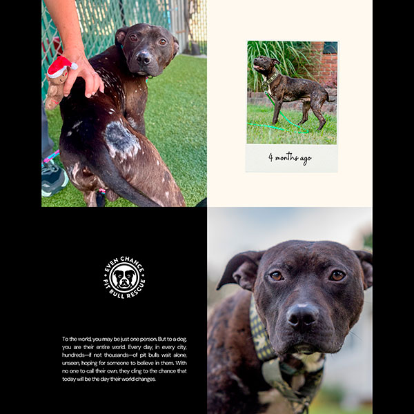 Even Chance does not operate on a first-come, first-serve basis. In most cases, we have already decided on the type of home and owner we want for our dogs. These opinions are based on the temperament tests we perform before accepting the dog into our program and the behaviors the dogs display as they spend time in our homes. Our agency reserves the right to deny acceptance of any dog to an owner who we feel the lifestyle does not match that of the dog. We are in no way judging you or your lifestyle; we simply want to put our dogs in the best living situation possible. We take the decisions we make when it comes to placing one of our dogs in a forever home very seriously. If I sound like the perfect pit bull for you and your family, and you are interested in giving me a forever home, do not hesitate! Please fill out an application at www.evenchance.org/adopt, and my foster family will contact you to schedule an in-person meet and greet. We look forward to meeting any and all interested applicants.